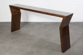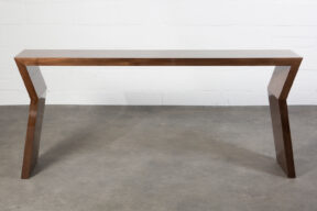 Console constructed in walnut and polished with a high gloss finish.