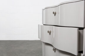 Three drawer chest finished in a high build acrylic paint lacquer.