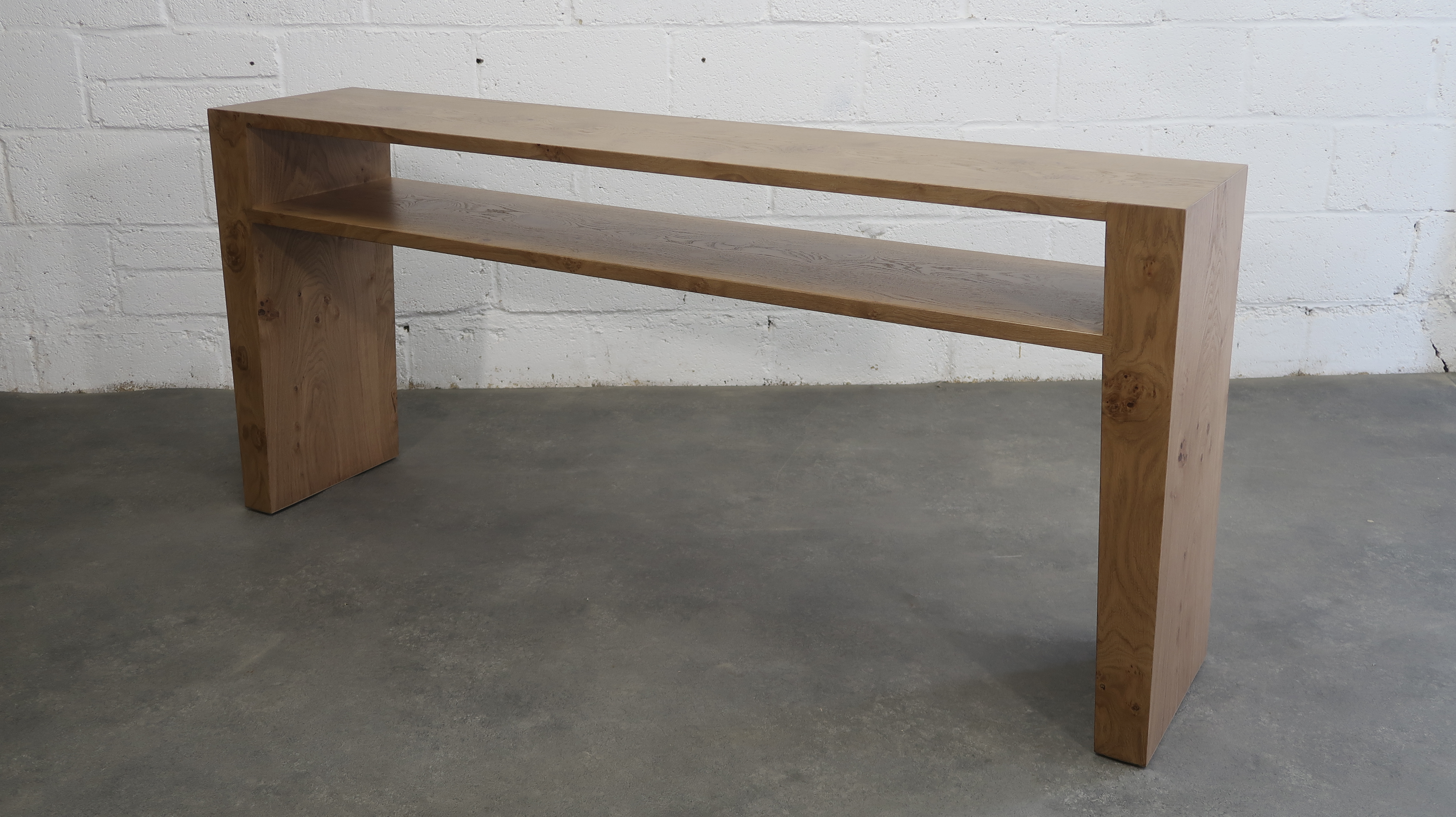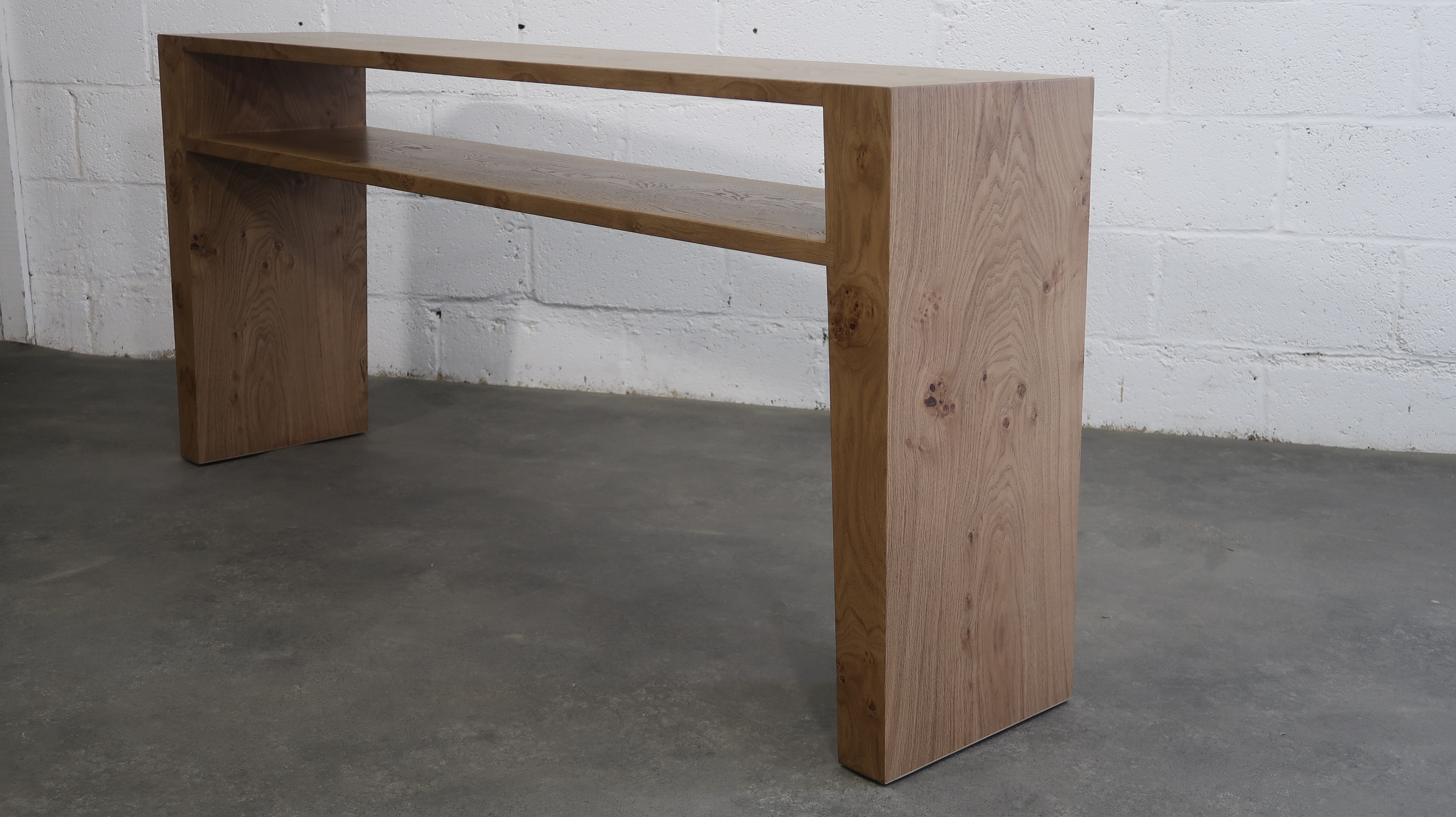 Rustic Oak veneer on moisture resistant boards formed this console.